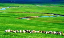 美麗的呼倫貝爾的一個個坡,一個個谷都是柔和的,舒緩的,那碩大的一望無際草原永遠(yuǎn)是那樣的恢弘、恬靜。呼倫貝爾的陳巴爾草原上的莫爾格勒河被當(dāng)?shù)厝朔Q為“第一曲水”,此地是以游牧部落為景觀的旅游景點(diǎn)。這里是呼倫貝爾有名的天然牧場,每到水草豐美的季節(jié),這里就會聚集很多游牧的牧民,形成一個自然的游牧部落。茫茫的大草原上,生長著如茵牧草,流淌著灣灣曲曲的河水,散落著成群的牛羊和點(diǎn)點(diǎn)的蒙古包……莫爾格勒河畔的金帳汗蒙古部落是依照當(dāng)年成吉思汗的行帳建成的,再現(xiàn)了當(dāng)年蒙古部落的風(fēng)貌。每逢夏季,陳巴爾虎旗走“敖特爾”的蒙古族和鄂溫克族的牧民們便在這山清水秀、水草豐美的所在,自然形成一個游牧部落群體。