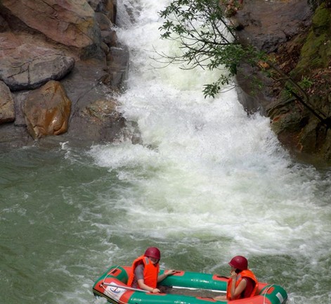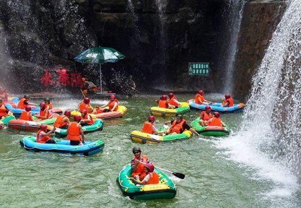 可以用四個字來概括:“險、幽、綠、趣”。第一:險。水道最大落差達12米,全程落差近100米,激流勇進,感覺非常刺激過癮。第二:幽。水道有兩個隱秘幽深的涵洞,橡皮艇駛進去,仿佛來到了別有洞天的世外桃源,再加上兩岸一叢一叢的筍竹和扇形開放的芭蕉葉,幽靜之感油然而生。版權所有山東聊城聊之旅國際旅行社有限公司,轉載必究!第三:綠。整個五星度假區就在一座巨大的五星林場中,郁郁蔥蔥的綠樹隨處可見,再加上一潭潭的清泉倒影著綠樹,給游人的感覺是滿眼的綠色。第四:趣。五星漂流在水道設計和景點的安排上,都凸現了一個“趣”字,能讓游人在沖浪中感受驚險與趣味,在玩趣中能享受大自然的美。