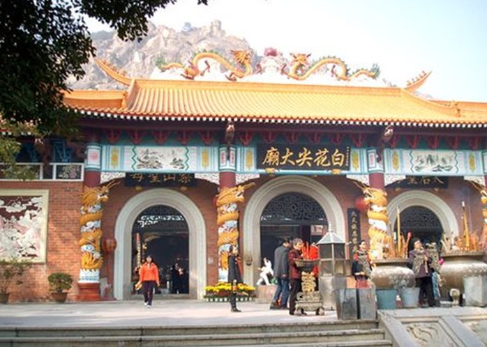 位于廣東省汕頭礐石風景區東麓海濱,有一座單體面積居全省之冠的大廟——白花尖大廟,也稱九天娘娘廟,1993年10月落成時,有海內外人士多達五萬之眾參加了開光大典,盛況空前,此后成為汕頭旅游熱點。 白花尖大廟由港胞陳錫謙等海外僑胞倡議,并誠捐巨資所興建,由古建筑工程師紀傳英所設計、承建,以其規模宏偉,典雅別致,充滿民俗文化藝術景觀,堪稱“潮汕民俗文化大觀園”而備受海內外游客贊賞。