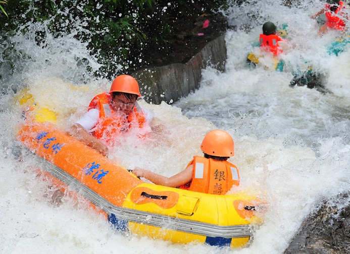 清遠(yuǎn)黃龍峽漂流河道兩岸群山奇石綿延,植被蔥翠,郁郁蔥蔥,游客穿石繞壁、凌波逐浪之間亦免除陽光暴曬之苦,全程舒適寫意,充分領(lǐng)略大自然生態(tài)之壯美。清遠(yuǎn)黃龍峽漂流全程約1.5小時,每日接待量約8000人次,游客可乘景點(diǎn)中巴或旅游大巴直接到達(dá)漂流起點(diǎn),大大縮短了等待時間。它是全國唯一的雙S回旋彎賽道及多個精心賽道設(shè)計讓游人真正體驗到挑戰(zhàn)自我的樂趣,而整個河道經(jīng)年初精心整葺,煥然一新,水質(zhì)大幅提升之余亦做足安全保障。