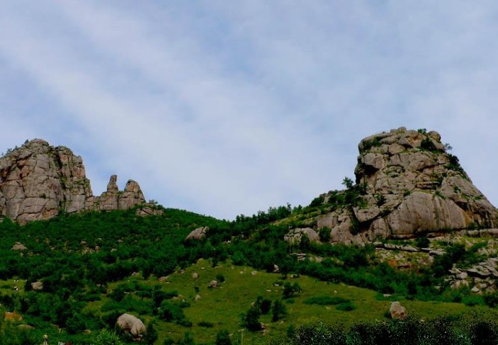 山上巖石千姿百態,劈山石、仙人橋、一線天、崖洞等險峻峭拔;醉臥雙獅、談心巖、三仙巖、望日臺等宏大雄奇;喇嘛巖、獨秀巖、母子巖、朝圣巖、望景峰、熊巖等維妙維肖,呼之欲出;香爐巖、臥馬巖、玉屏峰、繡球石等小巧可愛,形神兼備。諸峰渾然天成,橫縱俯仰,遠近高低則景致迥異。喇嘛池、南八仙、中岳、南岳、烏龍洞,別有洞天,或巖、水、林相映成趣,或自鑄一格,別成一景。