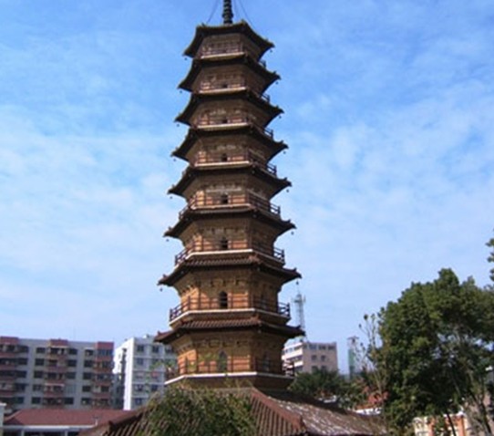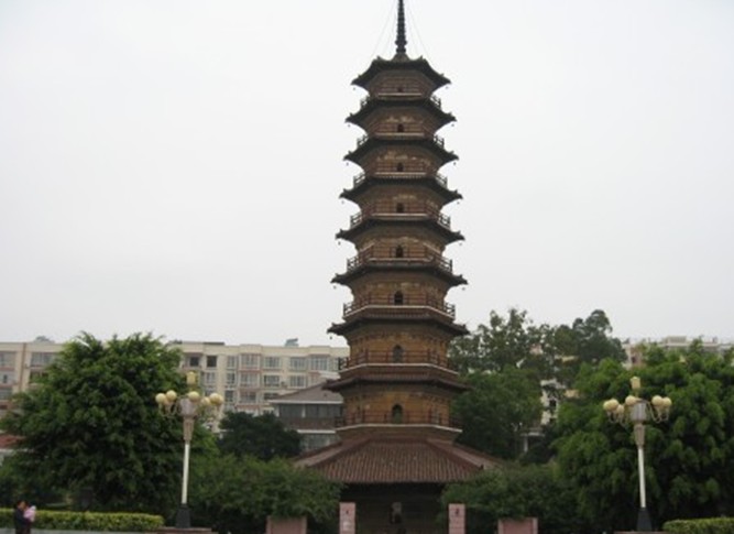 三影塔位于南雄市區永康路,建于北宋大中祥符二年(公元1009年),明代正統十一年(公元1446年)重修過。三影塔被列為全國重點文物保護單位。三影塔原名延祥寺塔,是延祥寺的一座建筑物,是廣東省僅有的有絕對年份可考的北宋早期磚塔。在光滑如鏡的寺壁上,竟然可以反射出三個塔影,一影向上,兩影倒懸,所以延祥寺塔被稱為三影塔。延祥寺內的一間廳堂也被稱為“三影堂”,可惜這座古寺廟早已毀掉,由于光線折射而出現的一塔三影的奇觀也隨之消失了。該塔為九層樓閣式磚塔,平面六角形,高50.2米,塔內設有木梯通向頂層,每層樓筑平座建欄桿,每上一層均須鉆出塔門,繞塔身一段,才能進入另一塔門,再向上攀登。