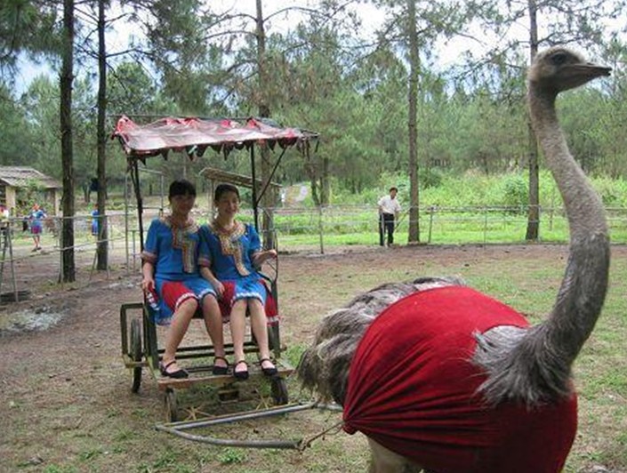 鴕鳥寨(養殖場)位于乳源縣城東12公里,距云門大覺禪寺7公里,距韶關市區39公里。鴕鳥寨集鴕鳥的孵化、養殖、繁殖、屠宰、皮革、羽毛加工、飼料制造及觀光旅游,餐飲旅業于一體的三高農業之一部分,總規劃占11000畝,目前已擁有屆同齡鴕鳥群約2000只。鴕鳥寨生態旅游區由幼鴕區、小鴕區、中鴕區、種鴕區、臺灣果園、現采蔬菜區、釣魚區、兒童游樂區、鴕鳥游樂區、燒烤區、民族文化廣場及原野滑草場與度假別墅區所組成。