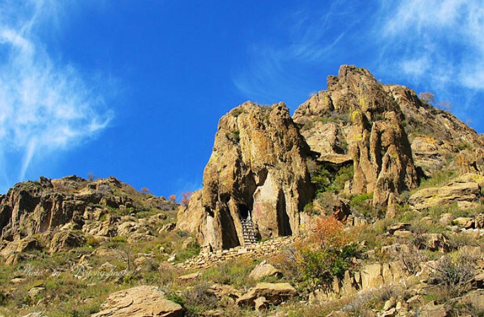 蘇木山之雄奇,首先在天那怪石嶙峋,形態(tài)各異的山巖巨石。登臨絕頂,縱眼四望,細(xì)究山形,有的酷似羅漢張臂喜迎賓;有的如同金龜伸頭探碧海;有的宛如擎天柱,渾圓挺拔入云霄。面對(duì)那形象逼真的“情人石”,不禁引發(fā)“頭靠身依情切切,恩愛情第度千年”的幽幽暇思。