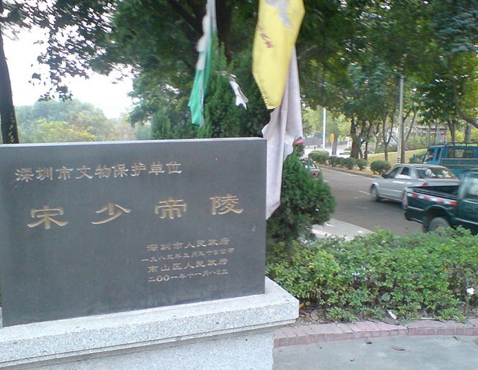 宋少帝陵,早期稱宋少帝墓,是南宋最后一個皇帝宋少帝趙昺的陵墓,位于中國廣東省深圳市南山區招商街道赤灣村少帝路、赤灣公園附近,是廣東省境內唯一的一座皇帝陵寢。宋少帝陵是深圳市第一批重點文物保護單位。宋少帝陵,位于深圳市南山區招商街道赤灣村少帝路,就在赤灣公園和赤灣小學附近。這是廣東省境內唯一的一座皇帝陵寢,也是深圳市第一批重點文物保護單位。