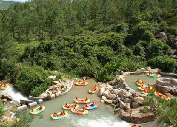 金水臺漂流,位于廣東省佛山市高明區楊和鎮與鶴山市交界的佛山第一峰皂幕山山下的金龍峽生態風景區內。景區四面山巒跌宕、霧繞群峰、鳥語花香、曲水回環、瀑瀉千尺、碧波幻影,谷深通幽處,風光無限好!到此漂流,如入仙境博舟,似在畫中暢游,激流險灘迭起,刺激、逍遙,不亦樂乎!