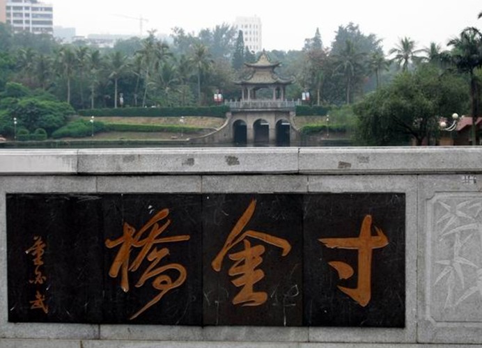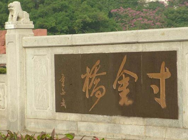 寸金橋位于湛江市赤坎區寸金路原廣州灣租界西面界河赤坎河(又稱文章河)上。河水連接寸金橋公園月影湖,橋之西為華界,橋之東為租界,是為紀念1898 ━1899年遂溪人民反抗法國強租廣州灣的斗爭的史志性建筑物。1925年遂溪縣麻章區紳民建,原有的“寸金橋”隸書橋名刻石,現存湛江市博物館。抗日戰爭時期重修,1959年和1986年擴建,為石砌單拱式水泥橋面橋梁,全長19米、面寬11.6米,單拱園徑6.5米,橋面南北兩側各置欄柱,人車分道。橋頭東西有董必武、郭沫若題詞橋匾,董必武題書“寸金橋”,郭沫若題“一寸河山一寸金”。接著,路改名寸金路,版權所有山東聊城聊之旅國際旅行社有限公司,轉載必究!公園改名寸金橋公園,車站和酒家均以“寸金”命名。一九五九年人民政府重修“寸金橋”,并于橋旁立碑(有碑文),從此“寸金橋”成為抗法斗爭的一個象征性建筑物。一九六○年,郭沫若到湛江觀看粵劇《寸金橋》,題詩有“一寸河山一寸金”之句,“寸金橋”名聲更著。 西山公園一九八○年改名“寸金橋公園”(因“寸金橋”在其旁,公園博物館內有抗法斗爭專題陳列)。一九八四年初又于公園內豎立大型雕塑《寸金橋抗法斗爭紀念雕像》,參觀的人絡繹不絕。