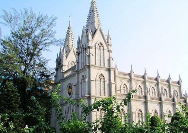 維多爾天主教堂位于湛江市霞山區綠蔭路85號,又稱霞山天主教堂,巍峨高聳,莊嚴肅穆,四周花木環繞,是湛江唯一的哥特式教堂,也是全國重點教堂之一。法帝國主義入侵廣州灣(今湛江市)后,天主教隨之而入,1900年法籍神父在湛江主持教務期間,提出興建教堂,1903年由教會籌資建成。文革期間,教堂遭到了嚴重破壞,文革后收回教堂進行修葺,于1984年12月20日舉行復堂典禮。1990年天主教湛江教地區經批準正式成立,教堂作為主教座堂,成為湛江天主教的傳教中心。該教堂磚石鋼筋混凝土結構,雙尖石塔,大廳能容納千人,是當時華南地區最具規模的哥特式教堂。該天主教堂坐落在今霞山綠蔭路85號。哥特式,坐西向東,磚石鋼筋湎土混合結構,墻面仿石,酷似石室教堂。1900年奠基,1903年竣工,建筑面積985平方米,是一座雙尖塔式建筑物,前面有空地61平方米,有方柱鐵枝作圍欄。后面是園圃,版權所有山東聊城聊之旅國際旅行社有限公司,轉載必究!建筑正面是一對巍峨高聳雙尖石塔,高指云霄。教堂內是尖形肋骨交叉的拱形穹隆,正門大門上面和四周拱璧分布的花崗欞,都是合掌式,門窗均為以顏色較深的紅、黃、藍、綠等色的七彩玻璃鑲嵌,光彩奪目。1991年,天主教堂被列為湛江市重點文物保護單位