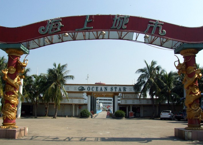 “海上城市”原名“巴西瑪魯”,是日本一艘國際遠航客貨輪,已有四五十年的歷史,船長 156米、寬19.6米,共有七層,排水量達1.7萬噸。1954年下水,1951年載中日友好青年代表團訪問中國,后改為旅游船,停泊在日本旅游勝地鳥羽市港灣,1997年由珠海華瑩集團引進,次年落戶于湛江,與雄偉的南海艦隊軍港隔海相望。