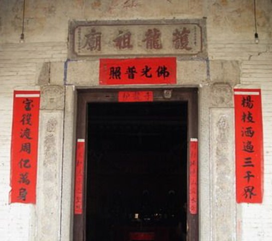 護龍祖廟在端州區(qū)黃崗鎮(zhèn)前村,始建于清初,同治十年(1871)重修。四周古樹懷抱,環(huán)境清幽,有小溪潺潺流過,廟前遠眺,田園秀色一覽無遺。廟為三進院落四合院式布局,面積136平方米,大門上方鑲嵌楷書“護龍祖廟”石匾,前后殿為硬山頂,面寬進深均三間,建筑物前設“低頭牽”,抬梁與穿十混合式梁架結構,兩殿之間以平面方形的卷棚頂廟亭相連,亭兩側空地邊緣,還用矮墻連貫前殿與后殿,使之渾然一體。該廟是肇慶市端州區(qū)目前保存最完整的廟宇。1984年公布為肇慶市文物保護單位。