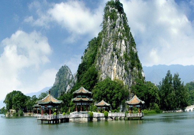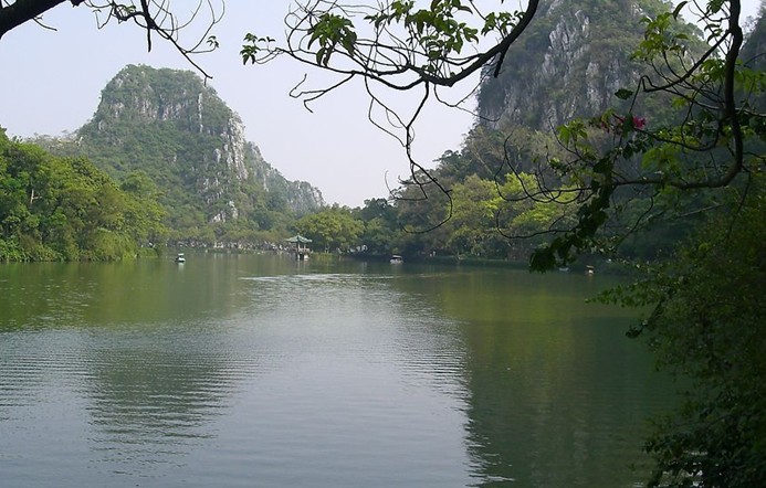 肇慶七星巖位于肇慶市區(qū)北約2公里處,景區(qū)由五湖、六崗、七巖、八洞組成,面積8.23平方公里,湖中有山,山中有洞,洞中有河,景在城中不見城,美如人間仙景。七星巖以喀斯特溶巖地貌的巖峰、湖泊景觀為主要特色,七座排列如北斗七星的石灰?guī)r巖峰巧布在面積達(dá)6.3平方公里的湖面上,20余公里長(zhǎng)的湖堤把湖面分割成五大湖,風(fēng)光旖旎。被譽(yù)為“人間仙境”、“嶺南第一奇觀”。國級(jí)文物保護(hù)單位七星巖摩崖石刻是南中國保存得最多最集中的摩崖石刻群,所以取名為七星巖。為5A級(jí)旅游景區(qū)七星巖主體由閬風(fēng)巖、玉屏巖、石室?guī)r、天柱巖、蟾蜍巖、仙掌巖、阿坡巖(又稱禾婆巖)七座石灰?guī)r山峰組成,排列如北斗七星般撒落在碧波如鏡的近600公頃湖面上。星湖原是由西江古河道形成的瀝湖,20多公里長(zhǎng)的林蔭湖堤,如綠色帶飄般把仙女湖、中心湖、波海湖、青蓮湖和里湖連結(jié)在一起,湖光山色,綽約多姿。