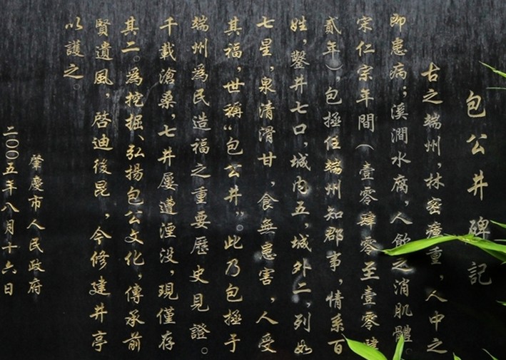 宋代名臣包拯,在肇慶任端州知郡事3年,為官清廉,大辦實事,造福端州。當時居民因長年飲用不潔凈的水,瘟疫、疾病時有發生.包拯發動群眾在城區開挖水井七口,居民感激包公將這七口水井稱為包公井。肇慶的水井到了清末民初已數不勝數,基本上所有街巷都有飲用水井.由于包公井年代久遠,七口井在何處,卻鮮為人知.
