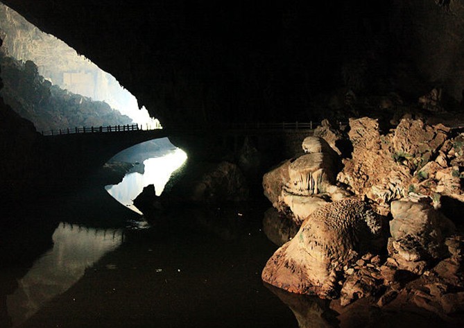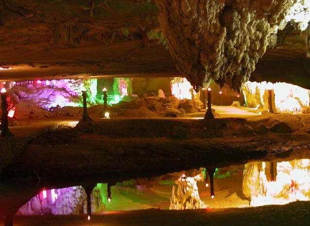 洞中曲徑通幽,石筍、石柱、石鐘、石人、石馬、石獅••••••或依或臥,或垂或立,栩栩如生。有將軍騎馬、梁祝攜手、三妹放歌、觀音坐蓮、寶鴨倒影、和尚念經(jīng)、庵中尼姑等五十六景。這些景點(diǎn)倒影在溪水之中,更是一幅幅奇麗的畫圖,使人遐想連篇。從前,洞內(nèi)建有立琴廟、文昌閣、劉三妹寺等景物。傳說歌仙劉三姐當(dāng)年為逃避地主老財(cái)?shù)谋坪Γ诙粗芯幼《嗄辏焯煸谶@里唱歌。民間傳說劉三姐在這里升仙,留下的化身便成了“三妹放歌”的景點(diǎn)。