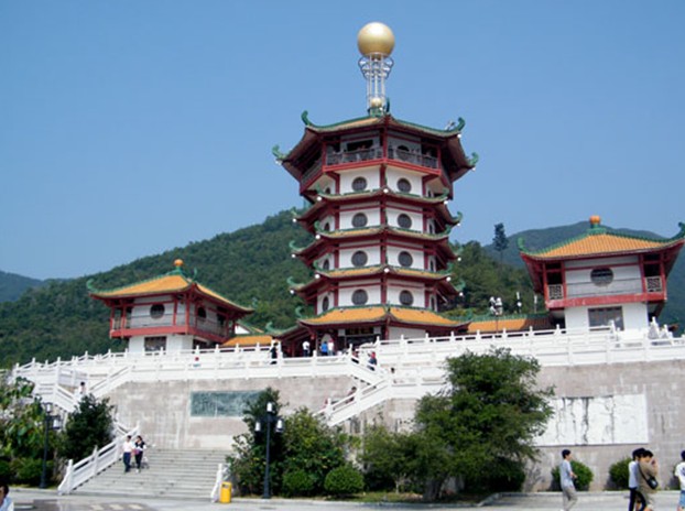 云修臺(tái)以北,即為關(guān)公財(cái)神廟。欲臨廟內(nèi),須登三層大臺(tái)階,拾級(jí)而上。每層臺(tái)階上都有一個(gè)四米進(jìn)深的小平臺(tái),平臺(tái)墻壁上有精美的漢白玉浮雕,雕刻精美,每個(gè)浮雕都含一個(gè)題材,內(nèi)容廣泛。平臺(tái)欄桿皆為漢白玉,古樸典雅。最后兩組臺(tái)階之中,仿制故宮太和殿前臺(tái)階,各置兩塊雕龍石刻,騰云駕霧,張牙舞爪,氣度非凡。登上臺(tái)階,眼前展現(xiàn)出一座巍峨聳立的八角塔樓,名為“觀星樓”。塔高六層,白墻丹柱黃瓦,翼角圓窗,層層飛檐,八望如一,雍容大方,高古雄渾。塔頂立有二龍戲珠之寶珠。門前紅柱上有一聯(lián):“樓觀端州白云入,門對(duì)西江日月生。”端州白云,西江日月全囊其中,是畫龍點(diǎn)睛之妙對(duì)。走進(jìn)樓內(nèi),首層供奉著彌勒佛像,咧嘴大笑、袒胸露腹、盤腿而坐、手托元寶。旁懸一副對(duì)聯(lián)警世:“以忠厚相承積金皆由積德,為秀靈所聚多寶更要多賢。”四周壁架上陳列著端硯、奇石、觀音立像、臥佛等眾多藝術(shù)品,琳瑯滿目。自二樓到六樓,依次供奉著黑、白、黃、紅、綠五姓財(cái)神。這五位財(cái)神,是由印度財(cái)神演化而來。登上觀星樓頂層,步出閣外,憑欄遠(yuǎn)望,其開闊之勢(shì)更甚于云修臺(tái),仰觀蒼穹,白云日月似可手摘;俯瞰眼前,云修秀臺(tái)儼然腳下;平視遠(yuǎn)方,肇慶全景盡收眼底。版權(quán)所有山東聊城聊之旅國際旅行社有限公司,轉(zhuǎn)載必究!星湖如鑒,七巖若棋,西江似帶。下樓出閣,見一大院,院北中軸線上坐落著賜財(cái)寶殿,院東乃好運(yùn)閣,院西為忠義軒。院中有池,壽龜、錦鯉、仙鶴全納其中。賜財(cái)寶殿白墻黃瓦,與觀星樓色調(diào)統(tǒng)一,重檐歇山頂。大門有一聯(lián):“莫笑我竹骨泥身許個(gè)愿試試,別管你玉衾錦衣燒柱香瞧瞧。”殿內(nèi)主供正財(cái)神趙公明,神情肅穆、氣度威儀,輔奉福、壽、祿、喜神和利市天官等16尊神像,形態(tài)各異,栩栩如生。出寶殿,向東進(jìn)好運(yùn)閣,祀奉文財(cái)神范蠡,閣內(nèi)長聯(lián)精煉概括了范蠡生平:“應(yīng)怨大樹招風(fēng),高功見疑,陶朱事業(yè)原無奈;贏得紅顏知己,青史傳美,煙水生涯聊可娛。”向西望忠義軒,見門聯(lián):“儒稱圣釋稱佛道稱天尊,漢封侯明封王清封大帝。”儒釋道三教皆祀關(guān)公。漢封“漢壽亭侯”,宋封“昭烈武安王”,明封“協(xié)天大帝”,清封“忠義神武靈佑仁勇威顯護(hù)國保民精誠綏靖翊贊宣德關(guān)圣帝君”。入殿視關(guān)公像,鳳眼雙睜,蠶眉上挑,絕倫逸群。神像旁又有一聯(lián):“數(shù)定三分扶炎漢,伐魏討吳,辛苦備嘗,未了平生事業(yè);志在一統(tǒng)佐熙朝,伏魔蕩寇,神威遠(yuǎn)震,只完當(dāng)日精忠。”是關(guān)公一生經(jīng)歷的概述。