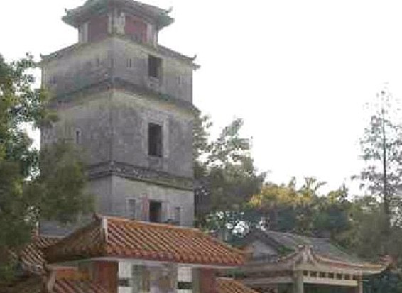 又稱聚星閣。位于中山市三鄉鎮鴉崗村,占地面積約2500平方米,始建于道光乙已年(1845年),清咸豐五年(1855年)和同治元年(1862年)重修,閣前置有同治元年(1862年)加建的四角亭一個。閣通高17.8米,一至四樓每樓面積4平方米,五樓2.5平方米,一層為"文武殿"設有道光二十五年(1845年)鐵鐘一座,咸豐五年(1855年)坤甸木刻鏤孔浮雕神臺一張;二層為"觀音殿";三層為"財帛殿";四、五層為觀光用。