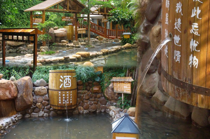 泉眼溫泉至今已有千年歷史,溫泉水質(zhì)經(jīng)中山大學(xué)基礎(chǔ)醫(yī)學(xué)院檢測,富含鈉,鉀,鈣,鐵,鋅等30多種有益人體纖體,美膚,活血、保健等功效的微量元素,是難以求得的優(yōu)質(zhì)巖層溫泉,被專家稱為“嶺南名湯”。溫泉設(shè)計(jì)融匯中外名泉優(yōu)點(diǎn),巧妙將現(xiàn)代與自然結(jié)合,溫泉空間人泉合一,泉區(qū)布局幽閑浪漫,有“浪漫溫泉”之美稱。