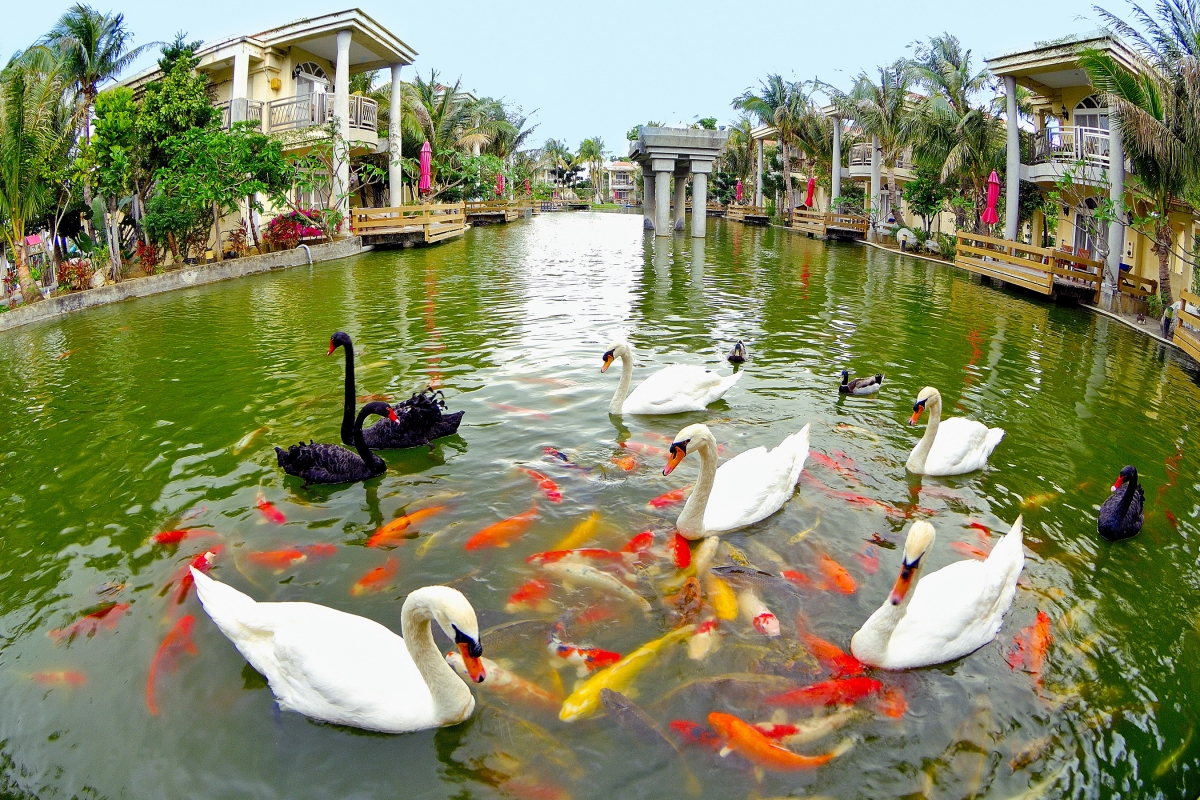天鵝湖庫區(qū)南北長8公里,東西寬5公里,總面積近40平方公里,是杭州西湖面積的8倍;堤壩總長71公里,聊城旅游網版權所有聊城聊之旅國際旅行社有限公司,轉載必究!設計庫容1.14億立方米,年吞吐量2.2億立方米,是全國最大的濱海平原水庫。庫西側有棧道直通湖心的太陽島。太陽島分為4個部分,由"丁"字形棧道連接。第一部分位于進島東西棧道南側,主景為寶塔山及長城等;第二部分是位于東西棧道東端的中心島,是太陽島中面積最大的主景區(qū),島上景點眾多,亭臺樓閣參差錯落,假山花圃錦繡迷人;第三部分是自中心島往南由棧道通連的南海景區(qū),主景是"天涯"、"海角"等;第四部分是自中心島往北由棧道通連的北海景區(qū),主景是北海白塔、荷蘭風車、鴕鳥園等。中心島設有游船碼頭,可乘游艇或摩托艇漫游湖區(qū)。有4個生物島布置在湖的4個角部。島上有鳥類百余種,其中珍禽有白天鵝、灰天鵝、黑天鵝、仙鶴等。湖中有魚類20余種,其中數(shù)量較多的有鯉魚、鯽魚、草魚、鲇魚、黑魚等。