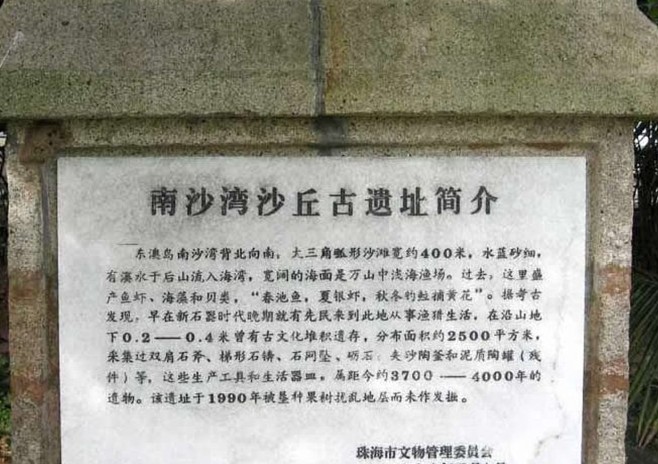 沙灣古遺址位于淇澳島東部高出海岸的沙丘上,1984年文物普查中在這里發現了新石器時代的彩陶文物,成為廣東省境內屈指可數的歷史年代較早的古文化遺址之一。