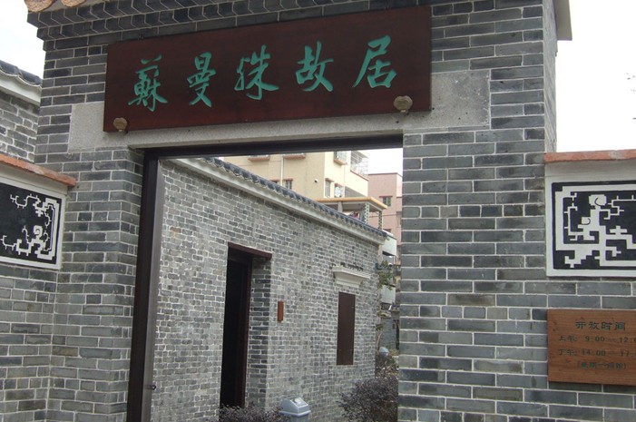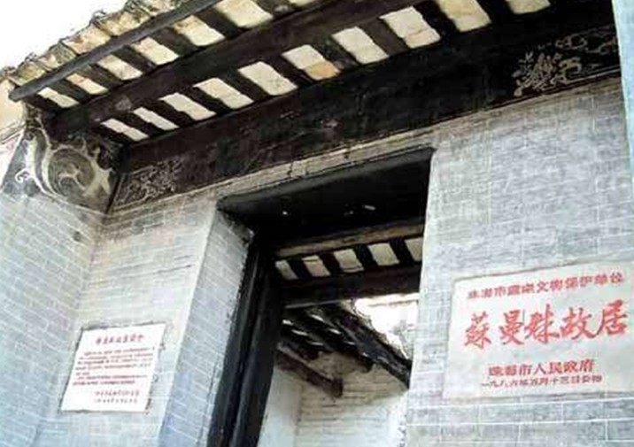 蘇曼殊故居位于珠海南溪社區蘇家巷內的蘇曼殊故居,原是蘇曼殊祖父蘇瑞文所建,為青磚土木結構小平房,面積40多平方米。光緒十年(1884)年生于日本橫濱的蘇曼殊,6歲至13時返回故里就讀于簡氏宗祠,深得啟蒙老師蘇若泉的鐘愛。1984年,蘇曼殊故居曾作為僑房維修過,1986年被列為珠海市文物保護單位。
