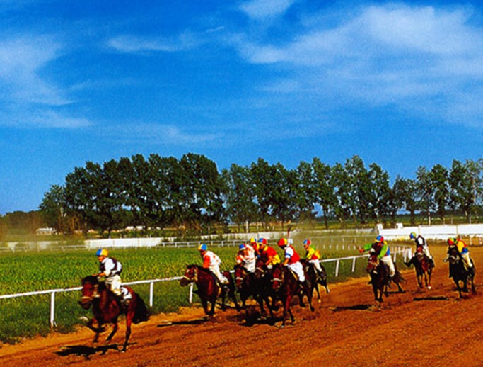 大慶草原賽馬場坐落在泰康鎮西郊,占地面積15萬平方米。現有職工112人,可參賽馬匹118匹。 賽場開闊,景色宜人,傍城近鎮,緊鄰蒙古村,亦是旅游觀賞的極佳場所。賽馬場始建于1993年,是那達慕大會賽馬的場所,當時定名為大慶賽馬場。1997年經市委、市政府決定,通過重新修建改造,增加了它的功能,成為旅游有獎現代賽馬的旅游景點。改名為大慶草原賽馬場。賽馬采用國際通用的胡特馬閘起跑,擁有騎術高超的專業騎士,所有賽馬均經過悉心調教,完全能夠完成現代賽馬的需要,并在原有民族賽馬活動的基礎上開發制定了規范和完整細致的現代有獎賽馬管理規則,使賽馬更具有競爭性、可觀性、大眾參與性及民族娛樂性,充分體現了現代賽馬的公平、公正、公開的原則。賽馬場自開賽以來,已成功接待了國內外游客25萬人次,同時還接待了中央、省、市各級領導56次。通過賽馬提高了該縣乃至大慶旅游業的知名度,弘揚了蒙古民族文化,現代的大慶草原賽馬場連同我縣的連環湖、壽山休閑度假村已經形成了大慶的金三角旅游熱線,吸引了大批游客。
