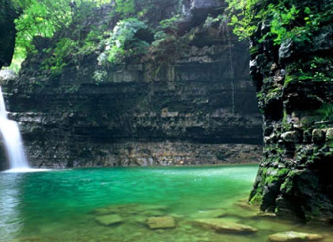 虎跳崖景區以秀美的山水吸引八方游客。虎跳崖瀑布好似一座珍珠屏風掛在山腰,俏儷怡人,濺起的水珠晶瑩剔透,風又把它吹的如煙如霧,清澈的溪水宛如銀鏈纏繞在群山腳下,水中游蕩翻轉的細鱗魚在陽光的照耀下不時映出道道銀色的光芒,如詩如畫。順流而下,便可進行20公里流程的三道沖河漂流—龍鳳山水庫的源頭漂流,沿岸風光秀麗,水流清澈透底。時而激流湍急,驚險刺激,時而穩流如靜,平緩蕩漾,令人留漣忘返。
