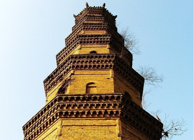 薛閣塔在安徽亳州老城東南,是一座磚塔。直椎式八角開,共七層,高34.15米,周圓23.36米。塔座由八塊青石奠基。塔一二層為仿木結構,每角砌磚為方柱,高3.5米。柱上仿高50公分。仿上為塔檐、上并飾以斗拱、昆蟲、鳥卉花紋,登塔門面向東北,有螺旋式臺階,塔室為一個面南的小龕,可能是供俸神象用的,現空無一物。各層塔檐造型與一二層基本相同。塔之上頂八角飛檐,挑角垂脊,鋪有筒瓦滴水檐形如八角古亭。版權所有山東聊城聊之旅國際旅行社有限公司,轉載必究!塔尖端為鐵鑄蓮座,座上有螺旋鐵柱支撐。一個鐵葫蘆直插云霄。