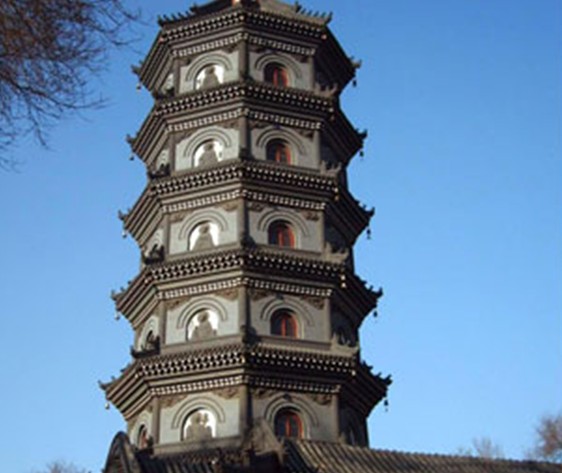 “浮屠”作為佛教徒膜拜的紀念物傳入中國,它的形狀很快被融化、改造。早在漢朝這種形象就已有了原型,既多層樓閣,這種中國固有的樓閣與印度傳入的“浮屠”相結(jié)合,便產(chǎn)生了中國形式的佛塔。多層樓閣在下,樓閣頂上置放“浮屠”形式的屋頂,稱為剎頂。于是,一種新的建筑樣式出現(xiàn)了。佛塔作為安放佛骨舍利的紀念物,起初是建立在寺院的中心位置,供佛徒頂禮膜拜。隨著佛像的出現(xiàn),供奉佛像的大殿逐漸替代了塔的中心位置。以后寺廟的建筑,佛塔被移至大殿之后,或者放在大殿中軸邊的院落里。塔形體高大,具有宣揚和招徠的作用,因此,它成為佛教建筑中必不可少的標志性建筑。