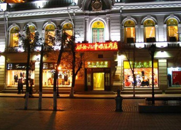 原為俄國商人伊•雅•秋林開辦的秋林商行道里分行。建于20世紀(jì)初期,磚木結(jié)構(gòu),仿文藝復(fù)興建筑風(fēng)格。首層以連續(xù)的腰線分割,墻面采用仿塊石砌筑,二層為對方額高窗,窗口上有石膏花飾,與一層的大玻璃窗相對應(yīng)。檐上做間斷的女兒墻,上面飾以巴洛克式浮雕,建筑頂部的轉(zhuǎn)角突出,屋頂輪廓富有變化,檐口下有精美的裝飾造型。哈爾濱Ⅱ類保護(hù)建筑。
