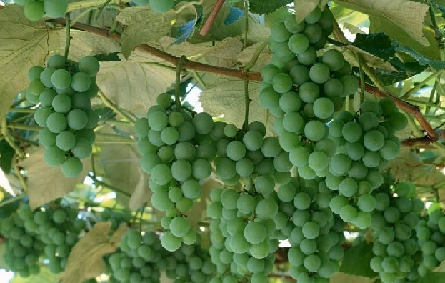 風(fēng)景秀麗的葡萄溝,以盛產(chǎn)優(yōu)質(zhì)葡萄而聞名中外。1994年溝里種植葡萄315.6 公頃,生產(chǎn)鮮葡萄8601噸。這里主要種植無核白葡萄,還有馬奶子、紅葡萄、喀什哈爾、日加干、瑣瑣等13個品種。其果實呈球形、卵形、橢圓形等,有的葡萄晶瑩如珍珠,有的鮮艷似瑪瑙,而有的綠若翡翠。那五光十色、翠綠欲滴的鮮葡萄,令人垂涎不止。