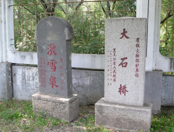 位于寧安市區西雞陵山下,橫跨大溝壑上。為清代通向遼、吉要道。此橋為黑龍江地區僅有的清代石拱橋。橋東有潑雪泉,泉水流入溝壑,經大石橋,南注牡丹江。始建于后金天聰八年(1634年),原系板筑;后改石筑,為單曲拱大橋,全長25米,寬4.5米,高7.3米.橋面鋪石,兩側設石欄桿,上雕刻石桃,版權所有山東聊城聊之旅國際旅行社有限公司,轉載必究!欄間嵌有刻成草葉紋和云卷紋飾的石板。建國后曾進行維修。
