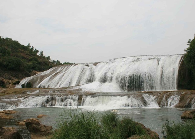 “遙聞水聲轟轟,從隴隙北望,忽有水自東北山腋瀉崖而下,搗入重淵,但見其上橫白闊數丈,翻空涌雪,而不見其下截,蓋為對崖所隔也。”這是徐霞客在《徐霞客游記》中對陡坡塘瀑布的描述。