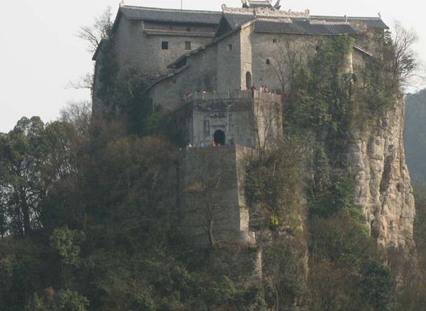 天臺山伍龍寺是屯堡古寺廟建筑的典范,它雄峙于一峰獨秀的天臺山上,四周城墻懷抱,是軍事功能和宗教功能合一的建筑。伍龍麉是屯堡古寺廟建筑中保存最完整的明清建筑群。它始建于明萬歷十八年(公元1590年),被建筑專家贊譽為“石頭建筑的典范”、“深山明珠”。它的結構分內外兩部分,外部均用石塊砌壘,與山巖由于風化造成的水平線十分接近,渾然一體,表現出粗獷的性格,墻壁上開極少的貓窗。