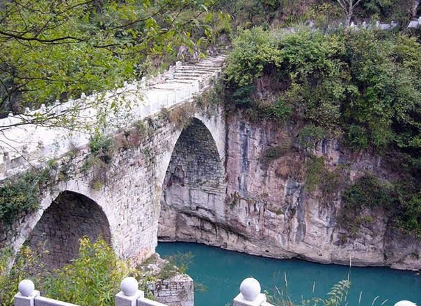 其中心景點為三江匯合處,三水斗奇,景致頗佳。溯三江而上,南連魚梁江古渡口響琴峽,北望沙河之濱的道教圣地福泉山,西走諸梁江畔仙人洞。在三江匯合處,絕壁高峻,雄渾磅礴,江心兀立巨石一塊,高約數十米,稱“將軍過河”,又有張三豐趕羊遺下的“金鞭石”之說。距沙河水約50米處,有一道瀑布,其下橫生一石,稱“金龜戲瀑”。 灑金谷的景物都有一個個美麗的傳說,如“牛王投井”、“黑熊抱美女”、“豆腐橋”、“草鞋井”等等。古城垣、古橋、古驛道、古摩崖石刻,讓游客置身一個遠離現代喧囂都市的凈土。“豆腐橋”更以其精湛的造橋工藝載入了中國橋梁史。版權所有山東聊城聊之旅國際旅行社有限公司,轉載必究!在橋頭還保存著歷代騷人墨客留下的詠橋詩篇。