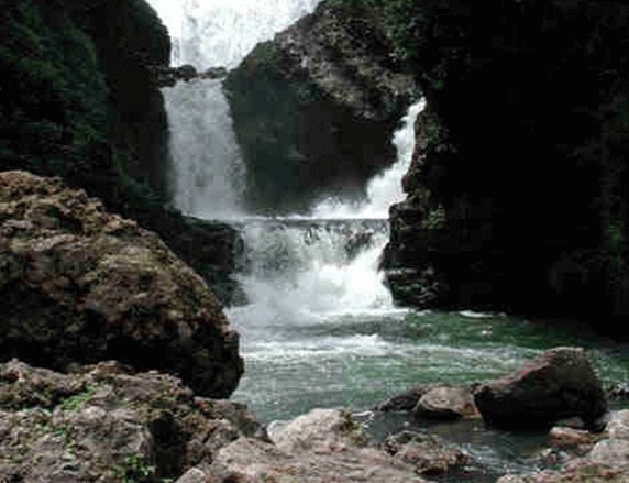 天下第一大神龕--香火巖神龕,位于景區(qū)中部半邊山下,寬約500多米,高約100多米的懸崖峭壁之上,龕內(nèi)隱約可見一座佛,高大雄偉,似人工實乃天成,迎面石峰矗立,若石人遙拜,渾然一體,妙不可言。香火巖大瀑布,位于神龕與石人之間,河水至此變窄、變陡,驟然間突現(xiàn)八級瀑布。總落差約250米,寬40米,樹林掩映、水霧縈繞、彩虹隱現(xiàn)、蔚為壯觀。沿觀瀑亭拾階而上,山路蜿蜒,奇樹夾道,藤繞枝連,綠葉蔽日,行約800米,忽見一景--滴水潭,滴水似鳴琴,深潭似臥龍,予人曲徑通幽之感。順小道前行,曲折似若無路,再行驟然現(xiàn)一大洞,謂之曰:"吐云洞",洞口云霧縈繞,洞內(nèi)怪石嶙峋,鐘乳倒掛,暗河密布,水流湍急,聲若雷鳴。洞內(nèi)絕壁棧道,游人至此無不感嘆大自然之鬼斧神工及建道者的艱辛。二洞天生橋,雄奇無比,人稱"黔中第一天生橋",橋?qū)捈s300米,高約50米,跨度約40米,橋頂中央巧開一"天窗",陽光飛瀉、滴水飄雪,觸手可及,人間仙境莫過于此。香火巖之紅楓林、紅霞巖、水簾靈芝巖、金雞湖等等之勝景在此不一一敷述,游人至此自可感悟一番......