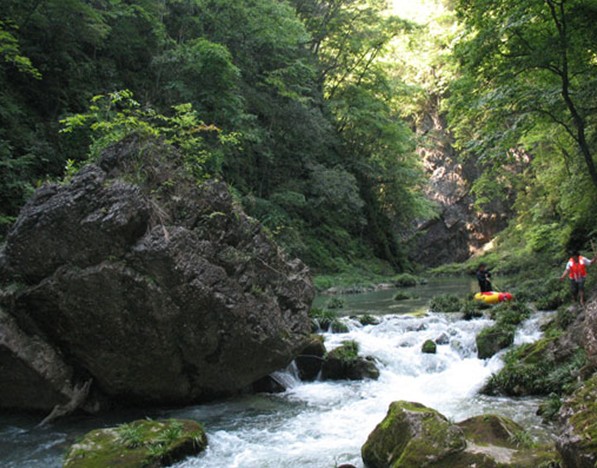 高過河風景區屬于峽谷型旅游勝地,由原始森林峽谷和深潭險灘飛瀑激流構成。四十平方公里景區范圍內,原生態植被豐厚,古木參天,奇花異草,種類繁多,是一個天然大植物園。區內千年古樹、明清桂蘭木蓮、以及國家一二級的保護樹種如南方紅豆杉、羅漢松、水杉、銀杏等,隨處可見;野鴨金雕,出沒其間;林幽谷靜,潭秀瀑美,動靜結合,野趣盎然;青山綠水間,還不時有天然壁畫、奇峰怪石如神來之筆。其中有國家一級景點3個,二級景點20多個。雄、險、奇、幽、美、妙交相生輝,造化神奇,尤其是獨具特色的古耳瀑布,險雄俊秀,卓而不凡。年平均氣溫12.5℃。享有“休閑勝地、度假天堂”的美譽。而獨具魅力的高過河漂流,是高過河旅游最刺激、最令人心曠神怡的項目。漂流河段全長10公里,漂流落差200米,老少皆宜。在享受精險刺激的同時,還可感受高過河兩岸令人流連忘返、拍案叫絕的峽谷景觀。為觀光旅游、度假避暑、尋古探幽的復合型省級風景名勝旅游區。