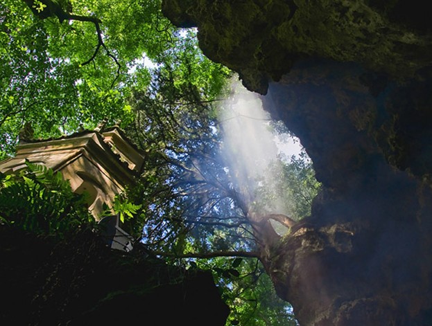 原廟傳為苗民草創(chuàng),每年農(nóng)歷“四月八”,數(shù)萬苗胞聚集于此,跳笙、對(duì)歌、賽馬、斗雀,狂歡三晝夜。明王守仁勝贊之曰:“天下山水之奇聚于黔中,黔中山水之奇聚于此崖?!憋w云崖似洞非洞,內(nèi)甚寬敞。頂上崖檐覆出,石乳倒垂。浮者若飛霞,亙者若虹霓,豁然樓殿門闕,懸若銅鼓編磐,并有獅象蛟龍、蓮行阡陌、蜂房水渦之屬。其下澄潭邃谷,幽深無底。巖半立大士像。
