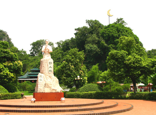 劉三姐景觀園 內有電影《劉三姐》主要鏡頭畫面的修復再現。景區內游客們能親睹劉三姐電影中的主要演員及我國著名電影導演蘇里先生,還可親身體驗廣西壯、侗、苗、瑤的民俗風情生活情趣。同時還能觀賞到極罕見的夜景,壯觀的大水幕,五彩繽紛的噴泉,彎彎的藍月亮,迷人的夢幻歌圩,幽雅的恬靜的踩月小徑,可漫步入踩月洞,電影中的劉三姐激光塑像,讓游客一飽眼福。進到劉三姐景觀園,讓您憧憬山村月夜的風情,帶走三姐的問候,留下你一片片深深的情誼……