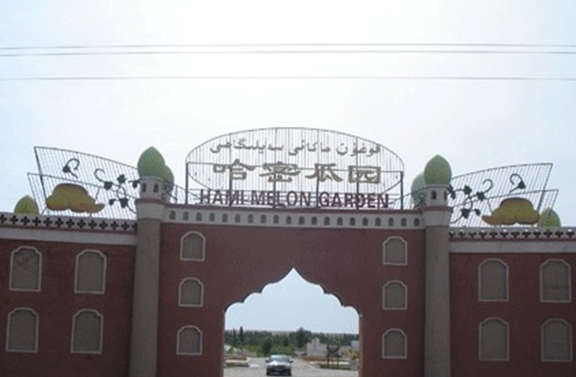 哈密市花園鄉喀拉塔勒村的“哈密瓜園”,占地面積18511.5畝,距哈密市區17公里。哈密瓜園分5個大區,分別為入口區、瓜園區、水上樂園、百果園休閑娛樂區和自然(戈壁)風景觀光區。入口區主要有烽火臺、瞭望塔、瓜園大門、哈密瓜展廳、駝馬客棧、南湖館驛、文化墻、停車場等相關配套設施,總占地70000平方。瓜園區主要有哈密瓜種植區、品嘗區、葡萄長廊觀光等景點,總占地面積3873.1畝。