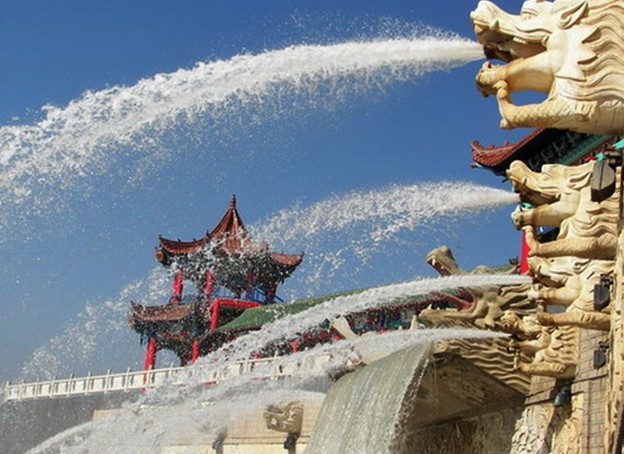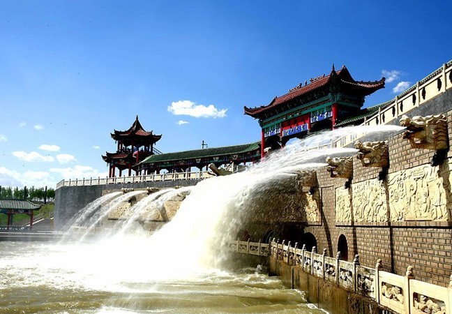為襯托栩栩如生的九條龍,版權所有山東聊城聊之旅國際旅行社有限公司,轉載必究!在橫截干渠的大壩上還頗具匠心地修建了一組仿古建筑物,總建筑面積約達600平方米。有分列兩邊的兩座八角廳、位于正中的一座門樓和連接涼亭與門樓的長廊,在巨潭兩側也有長廊約100米。景區中,人行地面上鋪設的紅綠相間的地磚,美觀而整潔。幾個嶄新的公用電話亭體現了設計者以人為本的思想。那高高聳立、造型各異的路燈使夜幕下的九龍潭別有一番風韻整個建筑物雕梁畫柱,色彩艷麗,具有濃郁的民族特色。作為人工建筑的旅游景點,九龍潭以引起游人的極大關注,自景點建成以來,每天都有很多游人前來游覽、拍照,它已經成為廣大市民引以為榮的濱河第一景。