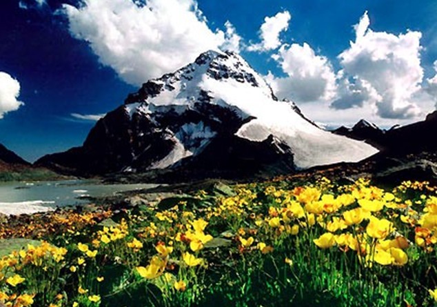 博格達山和它的母體天山一樣,是世界上最年輕的山脈之一,它在三億年前的造山運時于海水中初露頭角,及至六七萬年前的喜馬拉雅造山運動時才脫穎而出。博格達山主峰在天池南側,其上三峰并立,成“山”字形,中峰略高,海撥5445米,東峰海撥5287米。遠望三峰,屹立在一片茫茫雪海之上,就像三個擎天捧日的巨人,英武神勇,讓人感慨萬千。所以這被世人稱作雪海三峰的美景為歷代文人墨客所贊頌,寫了大量的贊美詩篇。長春真人邱處機在那首《宿輪臺東南望陰山》一詩中贊道:“三峰并起插云寒,四壁橫陳繞澗盤。”清代學者宋伯魯贊曰“三峰絕倚傍,終古插蒼冥”。《新疆圖志》的編修人王樹楠則更加形象地寫出了三峰的高大雄偉,詩曰“南山伸臂云天處,西域昂頭到日邊”。從這里我們多少可以領略到三峰的奇妙之處。博格達以奇為著,以險為絕,三峰昂天挺立,銀裝素裹,神峻異常。三峰之下更是千峰競秀,萬壑流芳,景色迷人。目力所及,遍是原始森林和山甸草原,蔥籠青翠,風光如畫。登博格達山,版權所有山東聊城聊之旅國際旅行社有限公司,轉載必究!最讓你賞心悅目的是,能在一日之內可見到四季之景。適逢七八月間,谷底正值盛夏,遍地山花怒放,香氣盈野,但多少有點暑氣燎人之感;待你登至半山,暑氣頓消,便覺春意盎然,遍地綠草如茵,如錦似毯,一切生命都迸發著勃勃微生機;再往上登,就漸感涼意襲人,草地也不似先前翠綠,而開始變得枯黃,給人一種秋天的感覺;及至到了雪線,便覺寒氣逼人,舉目望去一片銀白,雪光刺得你目不忍睜。這雪線附近,按說應是生命的禁區,可是在這里卻生長著許多奇異的雪山花卉,如雪蓮、野罌粟、翠雀、金蓮、金嬌、百里香、梅花草等十幾種,它們的種子可在零度發芽,幼苗可經受零下30攝氏度的嚴寒。雖然它們每年僅有兩個月的生長期。但它們依然用一生的熱情催放出艷麗的花朵,來裝點寂寞的雪域。這真可謂生命的奇跡。