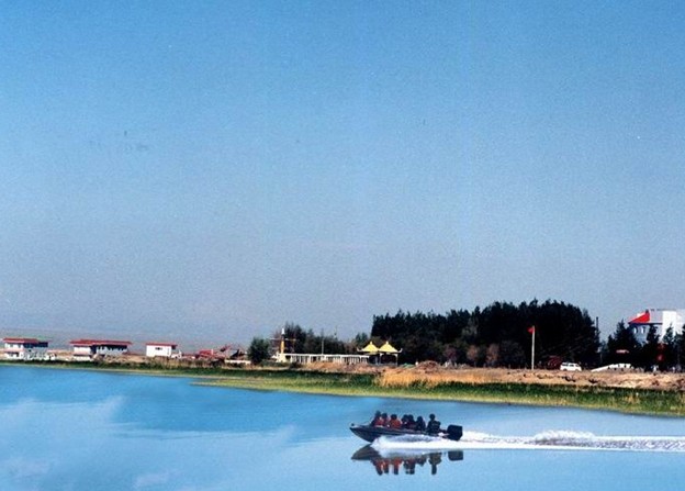 柴窩堡湖位于烏魯木齊市區(qū)東南約45公里的博格達(dá)峰腳下的柴窩堡盆地,地處達(dá)坂城地區(qū)西部,是一個(gè)天然冷水性湖泊,湖北臨蘭新鐵路、312國道、吐烏大高等級(jí)公路,東聯(lián)西通。柴窩堡湖屬中~富營養(yǎng)型的微咸水湖泊,各種污染物排列順序?yàn)榱蛩猁}、氯化物、PH、銅、高錳酸鉀與硝酸鹽氮;3月末、4月初解陳,11月中旬結(jié)冰,冰厚為27~41cm,5月的最高水溫為12℃,6月最高水溫為18.6℃,7、8月最高水濕為20℃左右,9月水溫均在15℃以下,水溫與氣溫的晝夜變化特點(diǎn)一致,差別明顯。
