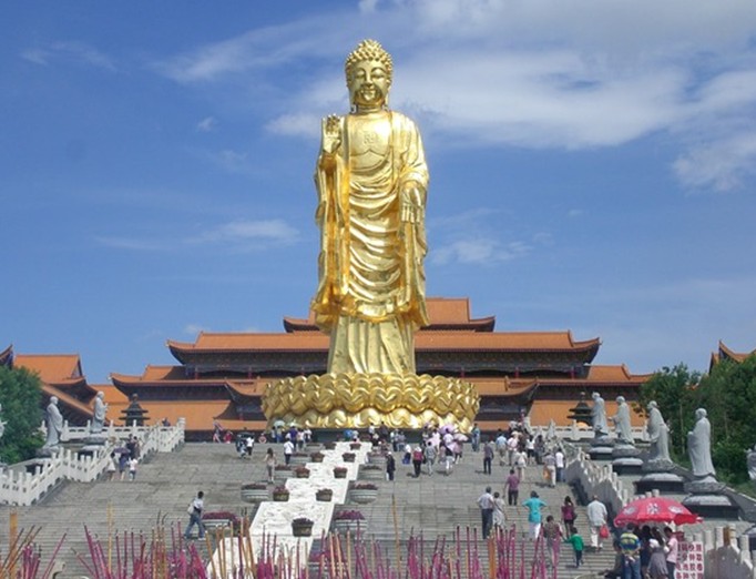 景區內的紅光山大佛寺伴隨著佛教寺院的梵音佛塔,若絲香火,晨鐘暮鼓,和佛祖來一次心與心的交流。感受佛教的博大精深。尤其是景區內高40.8米的西域大佛銅立貼金雕像,讓人充分領略佛教文化在西域的發揚與光大。大佛高高聳立,直入云端,氣勢之大顯得人更加渺小。大佛神態慈祥,身披金裝,一種普度眾生的超然神態,已讓人心生敬畏。懷著虔誠的心態,在大佛下許愿燒香,或許是為了追求一種內心的信仰與平靜.遠望大佛,壯觀雄偉,金光燦燦,氣勢磅薄,一派肅穆,揚善棄惡的佛教理念盈盈而生...看過介紹才知道釋迦牟尼佛祖銅像高達38.8米,重量達百余噸.由烏魯木齊市大光明銅藝廠主持設計,佛身全靠工匠們一點一點打造而成,僅佛手高有5.7米,佛的耳朵高2.6米,是世界第二大銅造立佛。