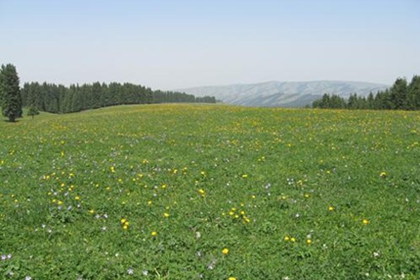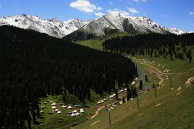 這是一處以生長大片金黃色菊花為特色的哈薩克草原牧區景觀旅游區。它位于西白楊溝的西側,為一緩坡傾斜的洪積扇臺面,海拔2000~2400米。春夏季節,臺面上菊花金黃,百花爭艷,蜂蝶紛飛,一派典型的天山草原風光。菊花臺東側的中梁臺上建有與國際觀察水平接軌的中科院烏魯木齊天文臺,我國最大的直徑25米的射電天文望遠鏡。