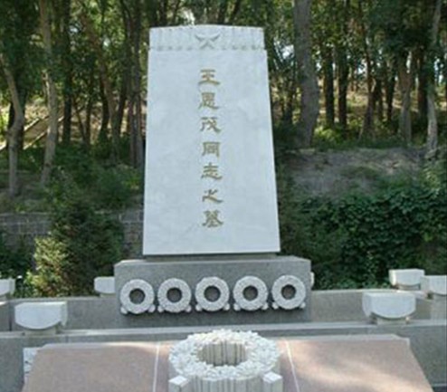 重建后的烈士墓碑,采用北京房山漢白玉,碑身高2.2米,底寬1.4米,頂寬1.28米,厚0.7米。正面是烈士墓碑題字,背面是用漢、維、哈、蒙四種文字鐫刻的烈士簡歷碑座、墓身份別采用泰山花崗巖和天山花崗巖磨制而成。碑座上精雕細(xì)刻著象征高潔的雪蓮花。晶瑩潔白的墓碑,莊重肅穆。