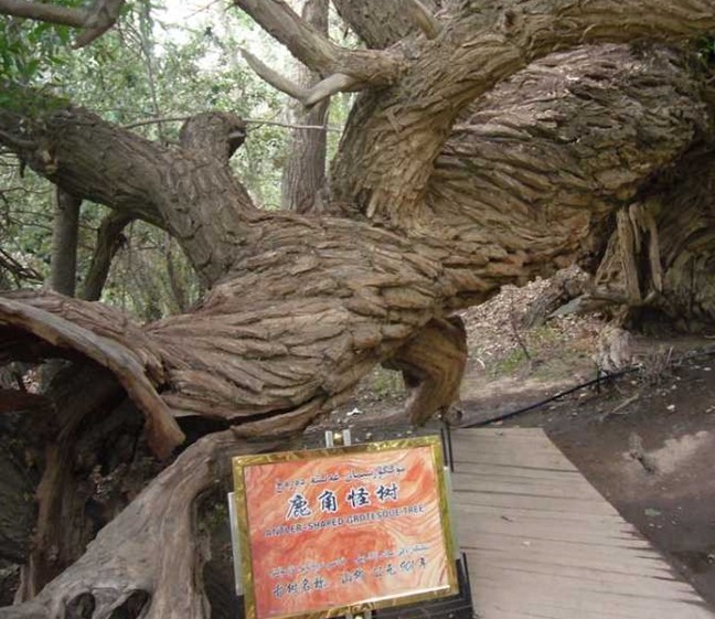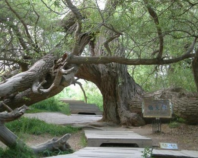 神木園其實(shí)是一處古墓地,它的原始名字叫庫(kù)爾米什阿塔木麻扎。在溫宿縣地圖上西北邊的一條公路兜住的那三個(gè)小圓點(diǎn),就是新疆聞名遐邇的天山神木園的標(biāo)注。溫宿縣志•卷二十七•第五章第四節(jié)古墓葬中對(duì)此記載如下:庫(kù)爾米什阿塔木麻扎位于薩瓦甫牧場(chǎng)場(chǎng)部東北10.7千米。地理坐標(biāo):東經(jīng)79°42′26″,北緯41°35′32″。面積680畝,海拔1700米,尚存古墓數(shù)十座。相傳公元11世紀(jì),沙特阿拉伯的一名叫蘇力塔庫(kù)爾米什賽依德的伊斯蘭教阿訇,帶領(lǐng)兩千名教徒,經(jīng)印度到中國(guó)傳教,受到當(dāng)?shù)厝说牡种撇l(fā)生沖突。敗退至此地時(shí),大部分教徒戰(zhàn)死,蘇也陣亡,便埋葬在這里,形成了一個(gè)占地頗大的麻扎。其中呈圓形的最大的一個(gè)是蘇的墳?zāi)梗m年久失修,確仍保持著穆斯林古老墓式。麻扎四周為戈壁荒丘,內(nèi)卻以草綠、樹(shù)怪、泉多而聞名遐邇。該麻扎高出地面50米,滿山遍野長(zhǎng)滿了綠草,山地像披上了一張綠色的地氈。草地里有10余處泉頭,泉水淙淙,從草地穿行而過(guò),樹(shù)形千姿百態(tài),有的似神龍游動(dòng),屈折盤旋,貼地而伸:有的樹(shù)高達(dá)96。23米;有的樹(shù)枝與根部相連,分不出那是枝,哪是樹(shù)根。很多樹(shù)都是百年以上的老樹(shù),版權(quán)所有山東聊城聊之旅國(guó)際旅行社有限公司,轉(zhuǎn)載必究!有的老樹(shù)倒地后又從根部發(fā)出新枝,長(zhǎng)成參天大樹(shù)。庫(kù)爾米什阿塔木麻扎,既是穆斯林朝拜圣地,又是風(fēng)景勝地,每年到這里朝拜、旅游者達(dá)萬(wàn)余人次。為保護(hù)這一勝地,1986年縣財(cái)政拔款4萬(wàn)元,群眾捐款十多萬(wàn)元,對(duì)麻扎清真寺進(jìn)行了修繕,并建筑了磚圍墻和架設(shè)了鐵刺圍欄。1989年11月,阿克蘇地區(qū)文物管理所普查隊(duì)來(lái)此地考查,被定為縣級(jí)文物保護(hù)單位,縣有關(guān)單位派有專人管理。麻扎東南20米處有一古墓群,計(jì)十余座,尚未發(fā)掘考察。這是1993年7月出版的溫宿縣志記載。從志書(shū)考證,神木園曾是一片處女地。公元11世紀(jì),蘇力塔庫(kù)爾米什及其2000名教徒傳教殉職葬于此地后,當(dāng)?shù)厝艘詭?kù)爾米什阿塔木麻扎為此地命名。如今那個(gè)古老的命名也只能從志書(shū)中去搜尋考證了。