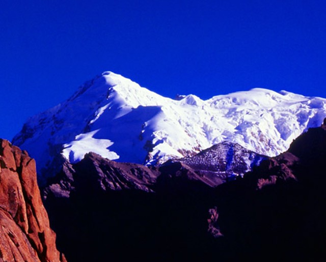 托木爾峰位于阿克蘇地區溫宿縣境內的中國與吉爾吉斯斯坦國境線附近,屬天山山脈中天山區。海撥7435.3米。“托木爾”,維吾爾語意為“鐵”。其主峰及周圍共10萬公頃山地于1980年被列為自治區級自然保護區,主要保護高山冰川及下部森林,生物群落及生態環境。