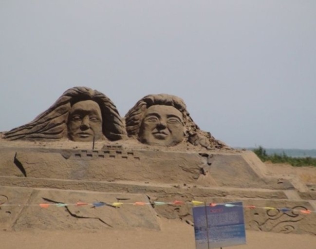 1999年7月,新疆維吾爾自治區(qū)黨委書記王樂(lè)泉同志檢查指導(dǎo)金沙灘旅游區(qū)開發(fā)建設(shè)情況,為這里優(yōu)美的自然風(fēng)光所吸引,欣然提詞“西部明珠金沙灘”。