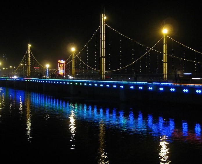 孔雀河橫穿庫爾勒市區,把庫爾勒市分為南北兩半,北面以州市地方單位為主,南面以塔里木勘探開發指揮部及石油單位為主。在市區長達七公里的孔雀河上共有五座橋,有孔雀河大橋、獅子橋、建設橋、團結橋等。上游的孔雀河大橋是314國道跨越孔雀河上目前最大的橋梁,橋跨150米,寬24。5米,是我國西北地區最大的一處拱形鋼橋,河面無橋墩,它是孔雀河在庫爾勒市區的一處重要景觀,是孔雀河濱風景旅游帶上一道獨特風景線。近些年庫爾勒市從實際出發,利用孔雀河穿城而過的優勢建設了孔雀河風景旅游帶工程。風景帶基礎設施完善,綠草如茵、鮮花怒放、景色宜人,成為市區一道亮麗的綠化美化線和旅游風景線。一方水土,因風雅而美麗;一座城市,因歷史的積淀和教養而文明。版權所有山東聊城聊之旅國際旅行社有限公司,轉載必究!現在的孔雀河市區段玉水如帶,百步一景。清晨,薄霧輕紗,爽氣怡人;晚間,夕陽鋪水,依稀將人帶入夢中仙境。早晨鍛煉身體的人在這里吐故納新,采天地之精華;傍晚,休閑的人們在這里納涼散步,觀夜景之妙。如潮的人流摩肩接踵,使孔雀河畔洋溢出一種節日的氣氛。