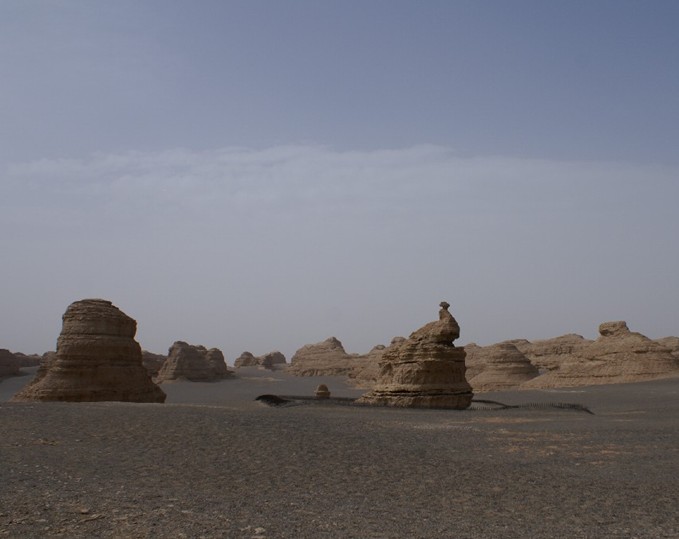 在若羌縣境北部的羅布泊地區(qū),有著大片“雅丹”風(fēng)蝕地帶,他大至分布在羅布泊的東西北三面,其中以羅布泊東面的雅丹地形最為典型。這片風(fēng)蝕地東西寬約35公里,南北長約100公里,面積達3500平方公里,崗阜上,覆蓋著一層白色的鹽堿土層,有的是一層很厚的精鹽,另有一部分崗阜,本身就是白膏泥,他們在清晨陽光的映照下,反射出燦爛的銀光,因此,古書稱其為“白龍堆"。