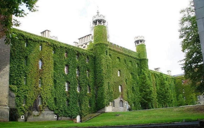 然而,最使人留連卻步的還是那滿城的綠色。青蔥的草地幾乎鋪滿了這座小城除了街道以外的一切空地。那一棟棟高大的校舍、教堂的尖頂和一所所爬滿青藤的紅磚住宅就在這一片綠色之中。劍河邊上,垂柳成蔭,叢林擁翠,襯托著劍河的一泓碧水,整個劍橋就像一片綠色的海洋,綠意蔥蘢,令人心醉。